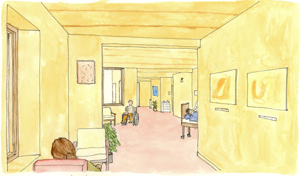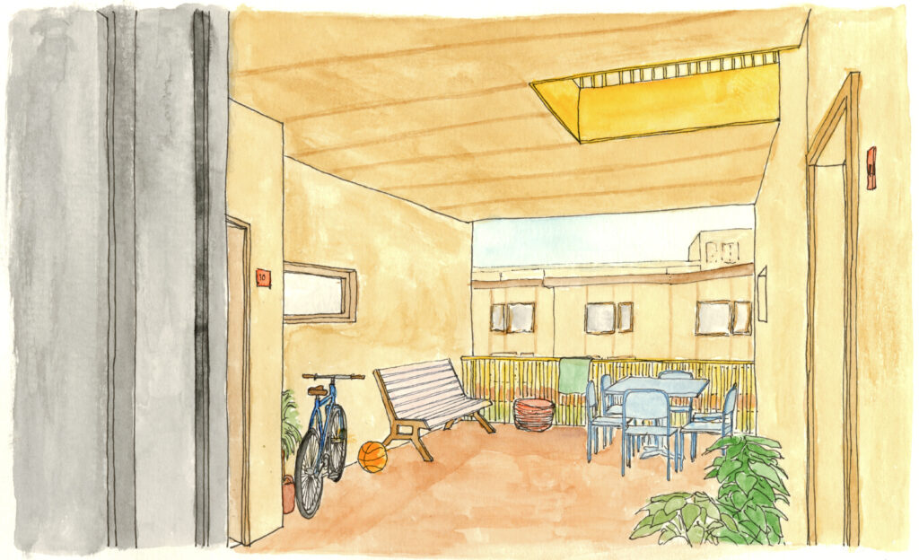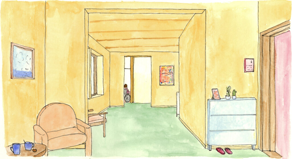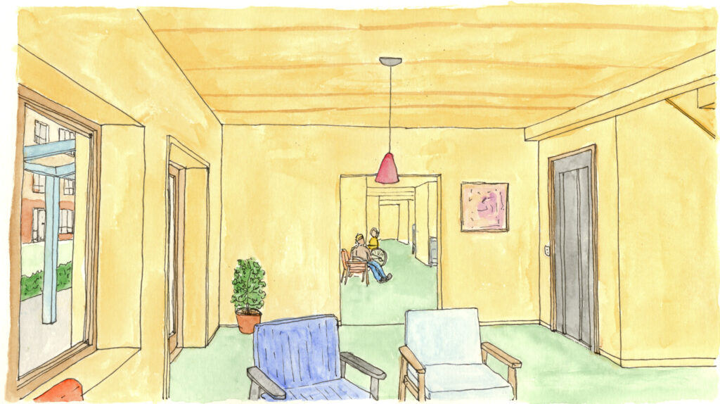 I made these drawings as part of my graduation project for the TU Delft Masters of Science in Architecture. For this project I designed dwellings for multi-generational living and a hospice. The drawings show the daily life in the homes of the residents.